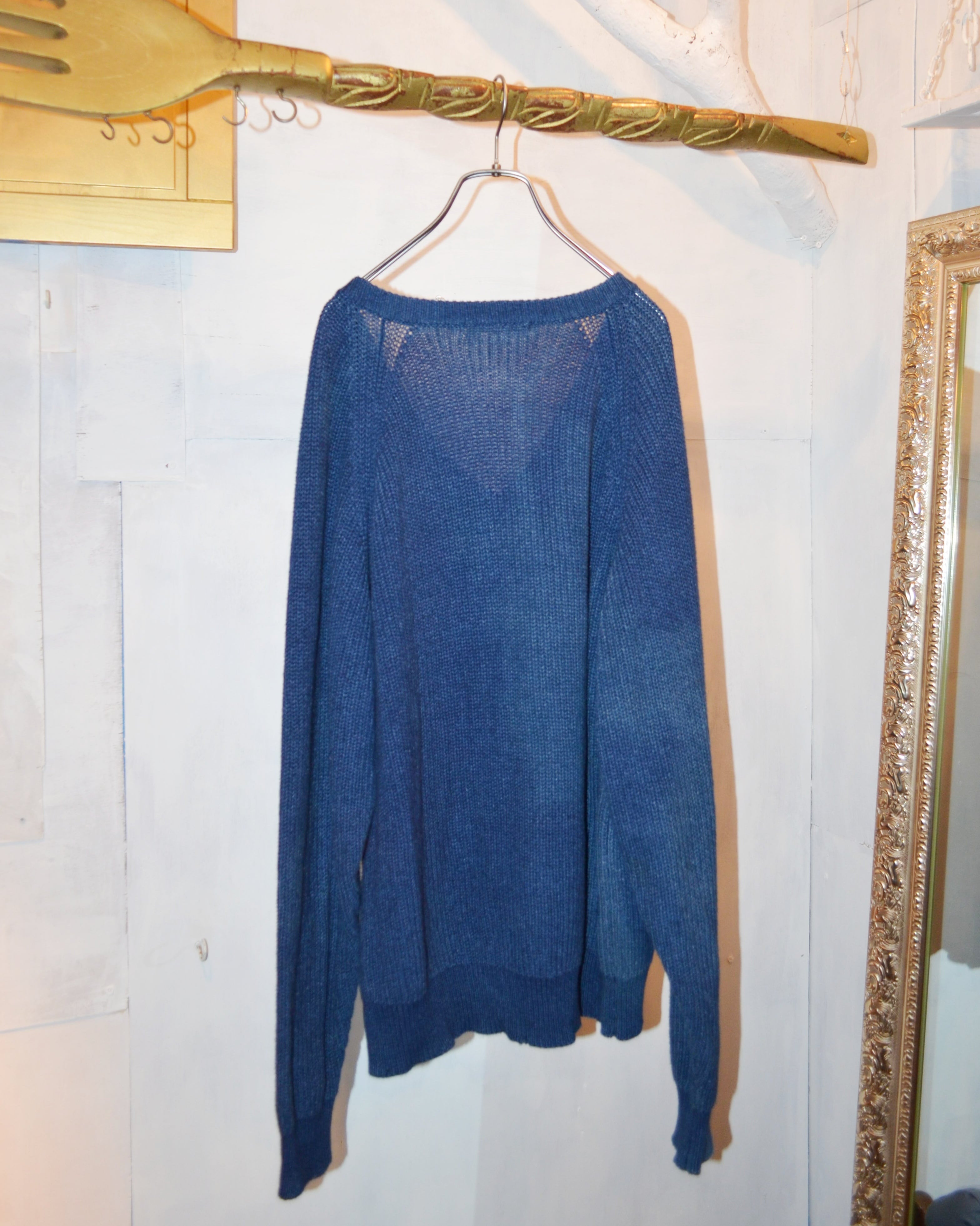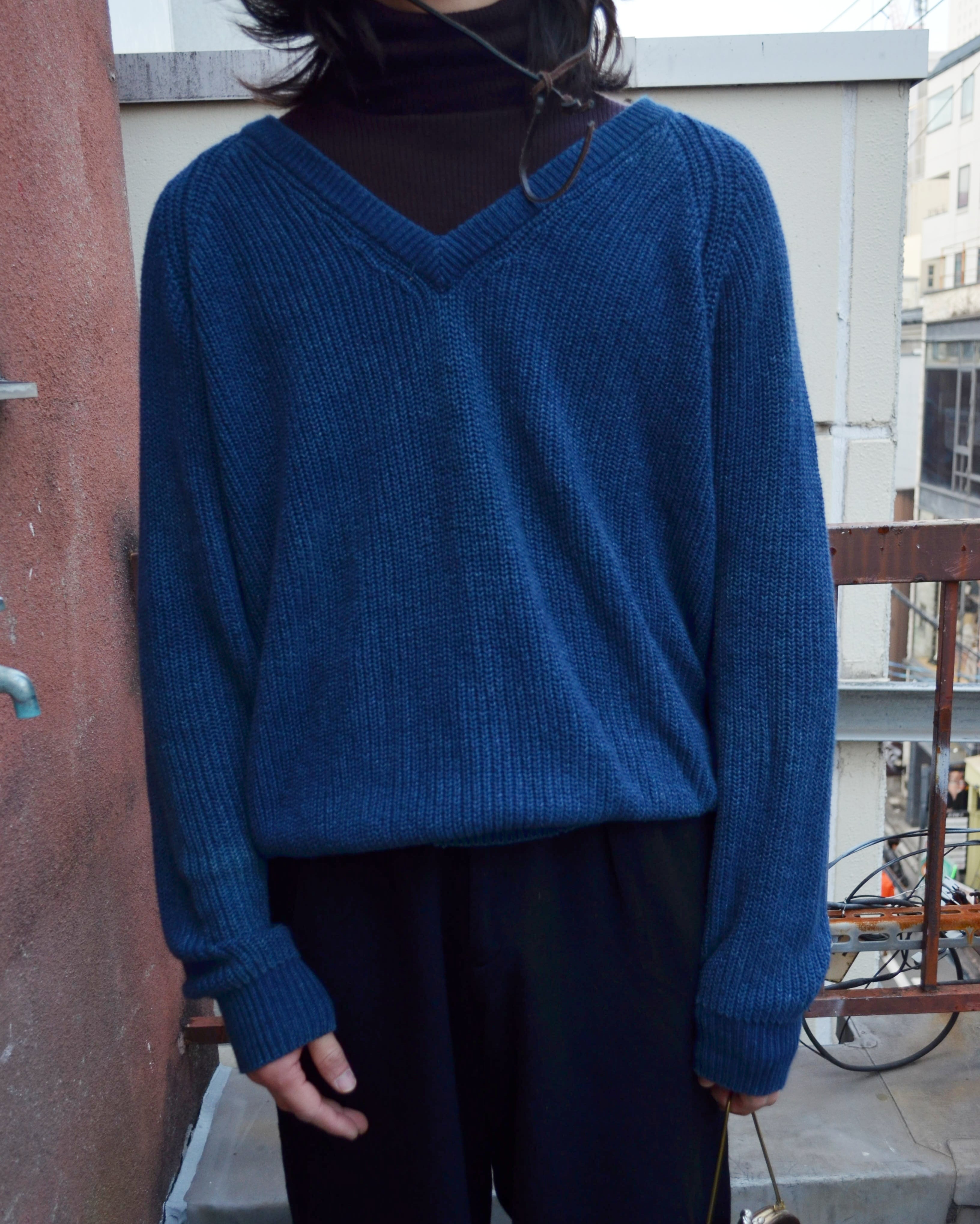 古着市場でも人気の高いインディゴ染色のコットンニットを山本耀司のシルエットとマテリアルで楽しめる贅沢なセーター