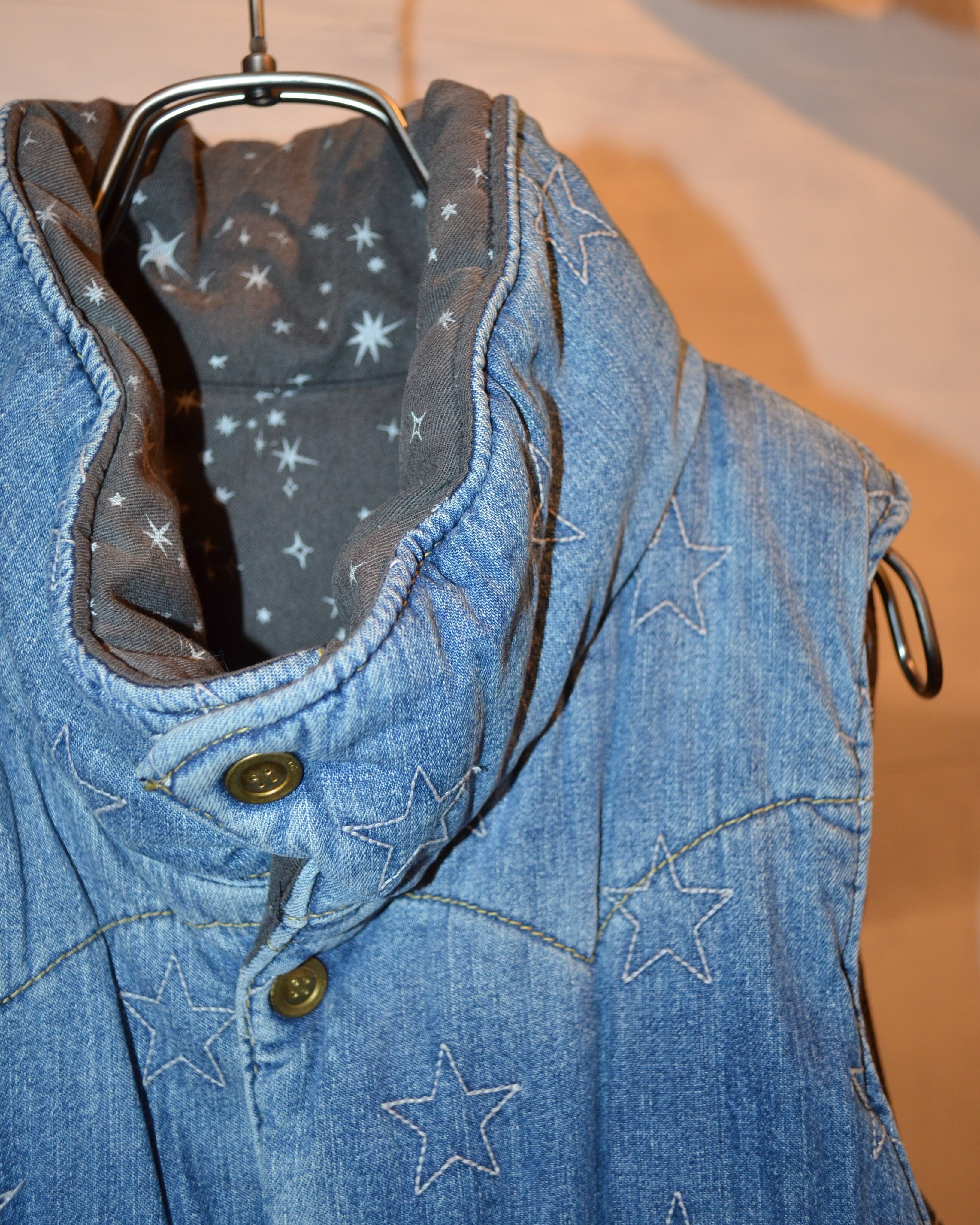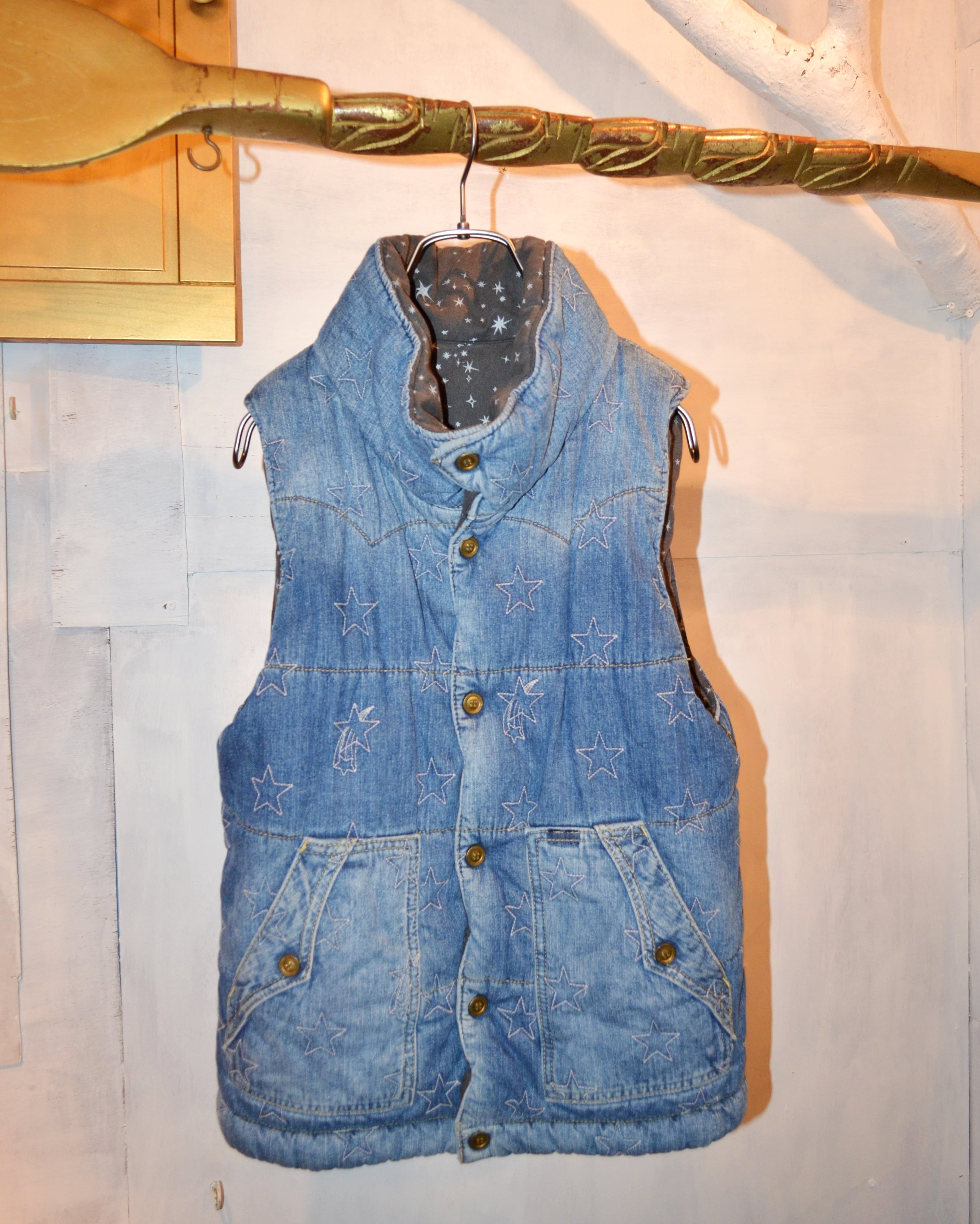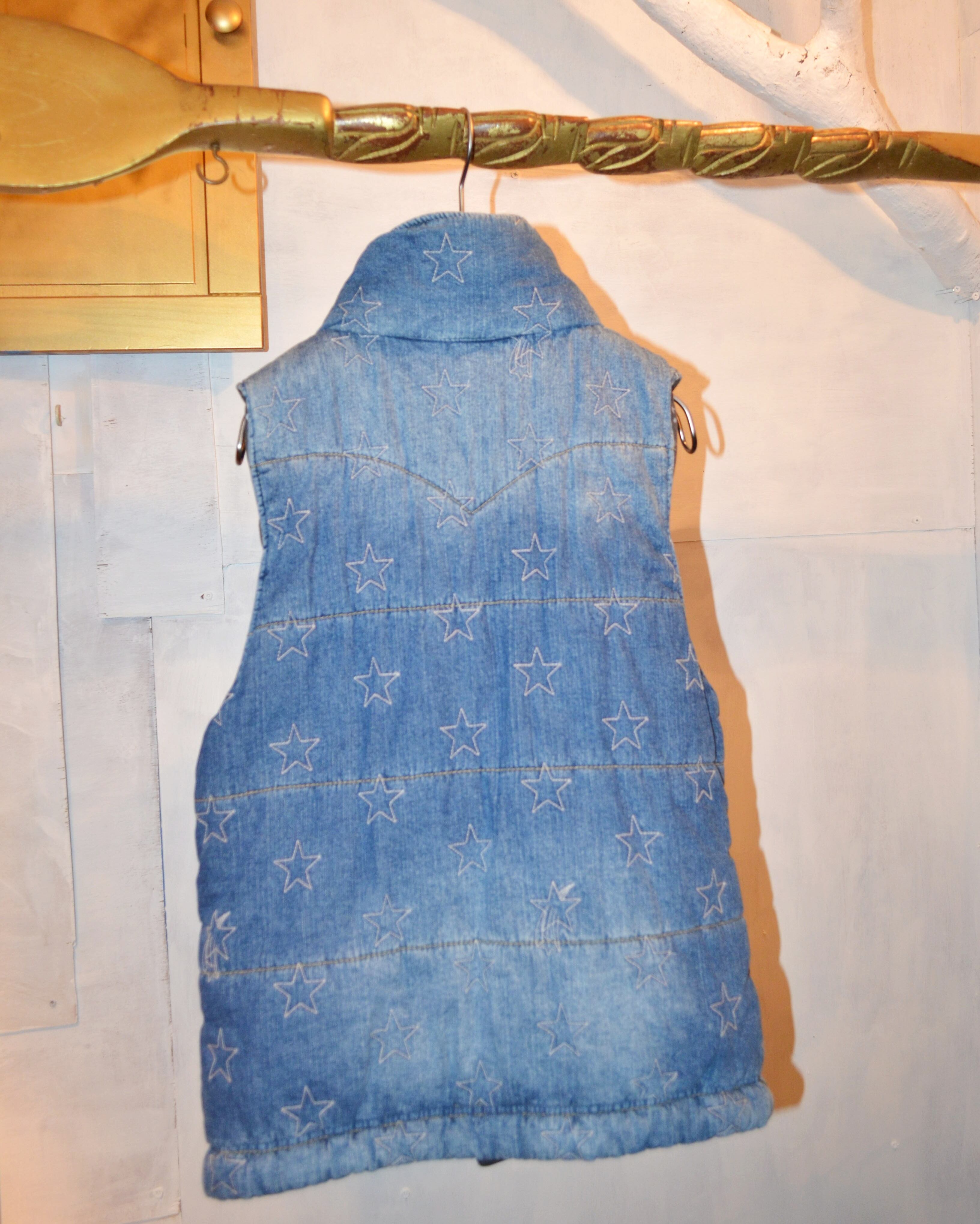 デニムに星柄刺繍のダウンベスト