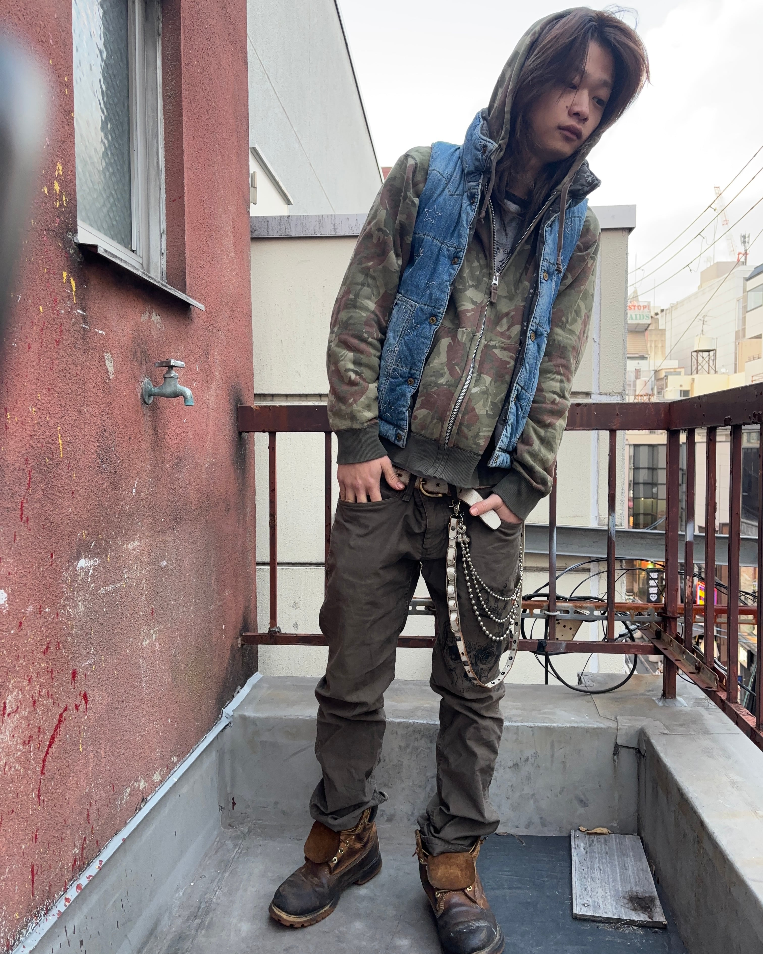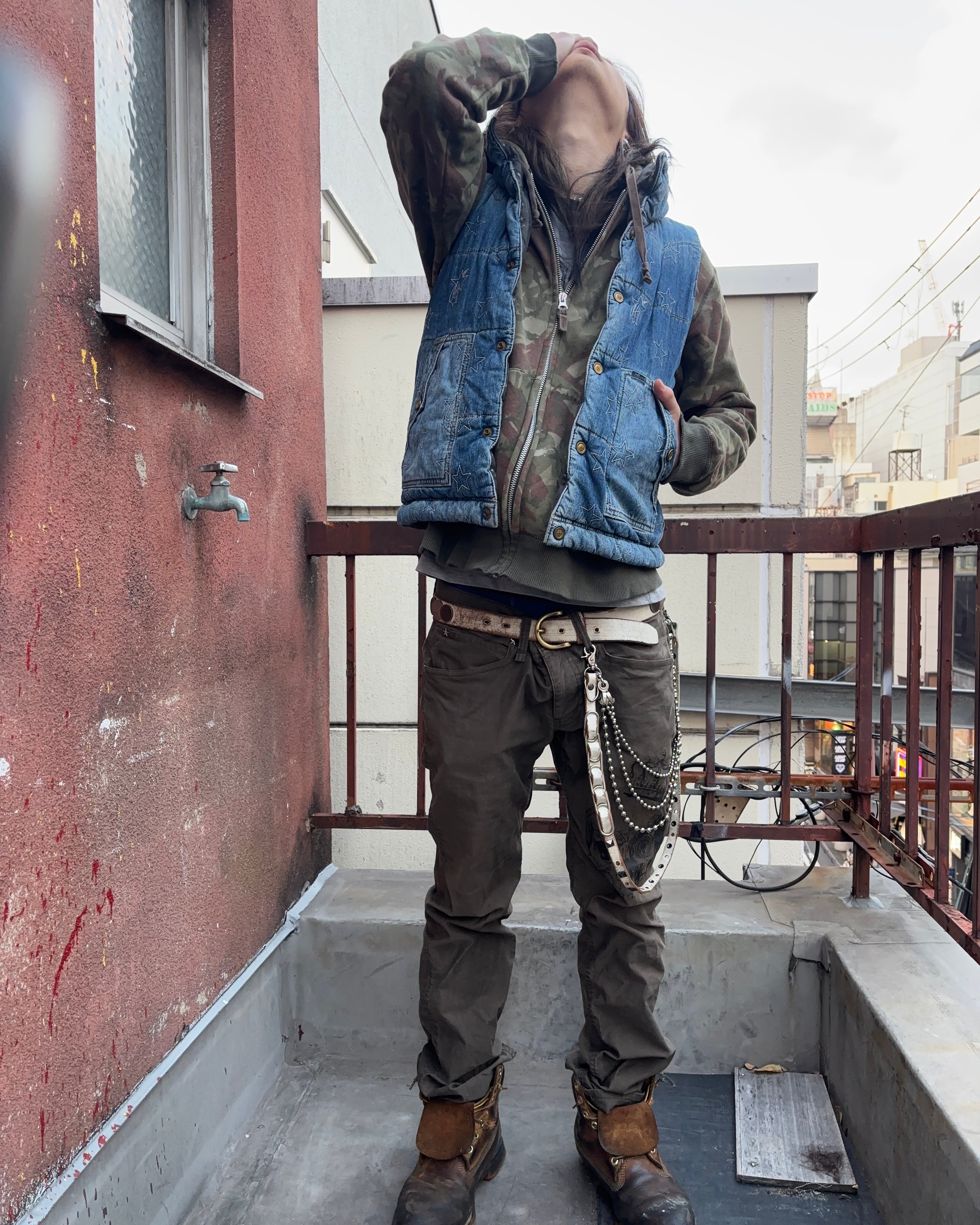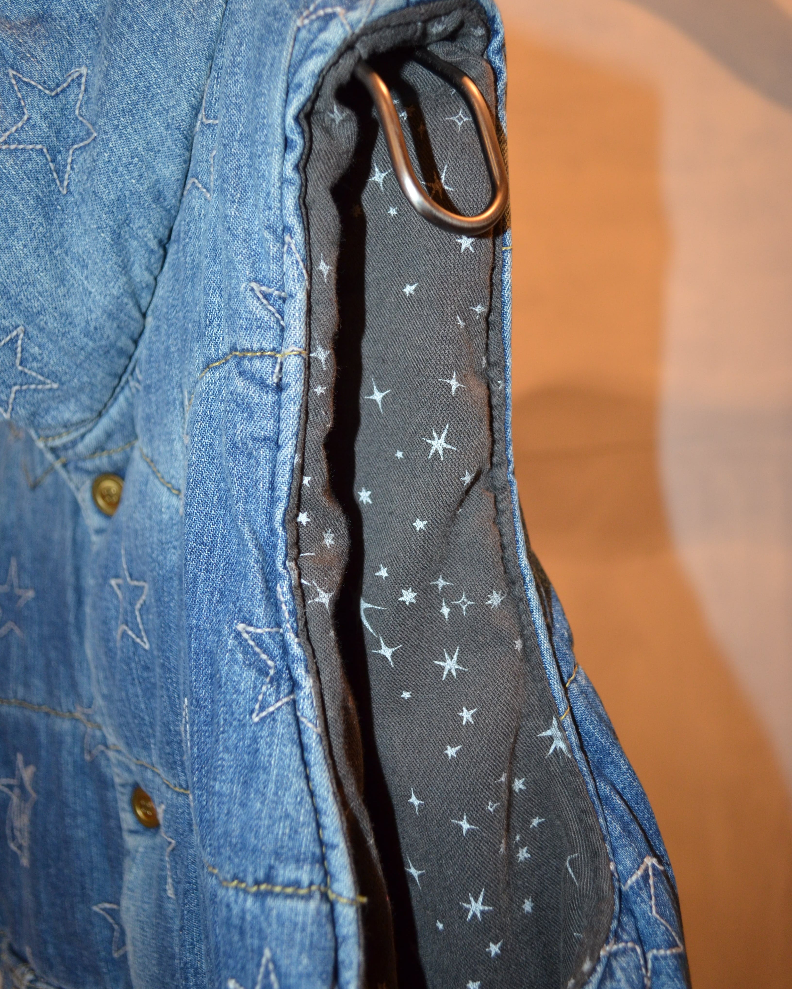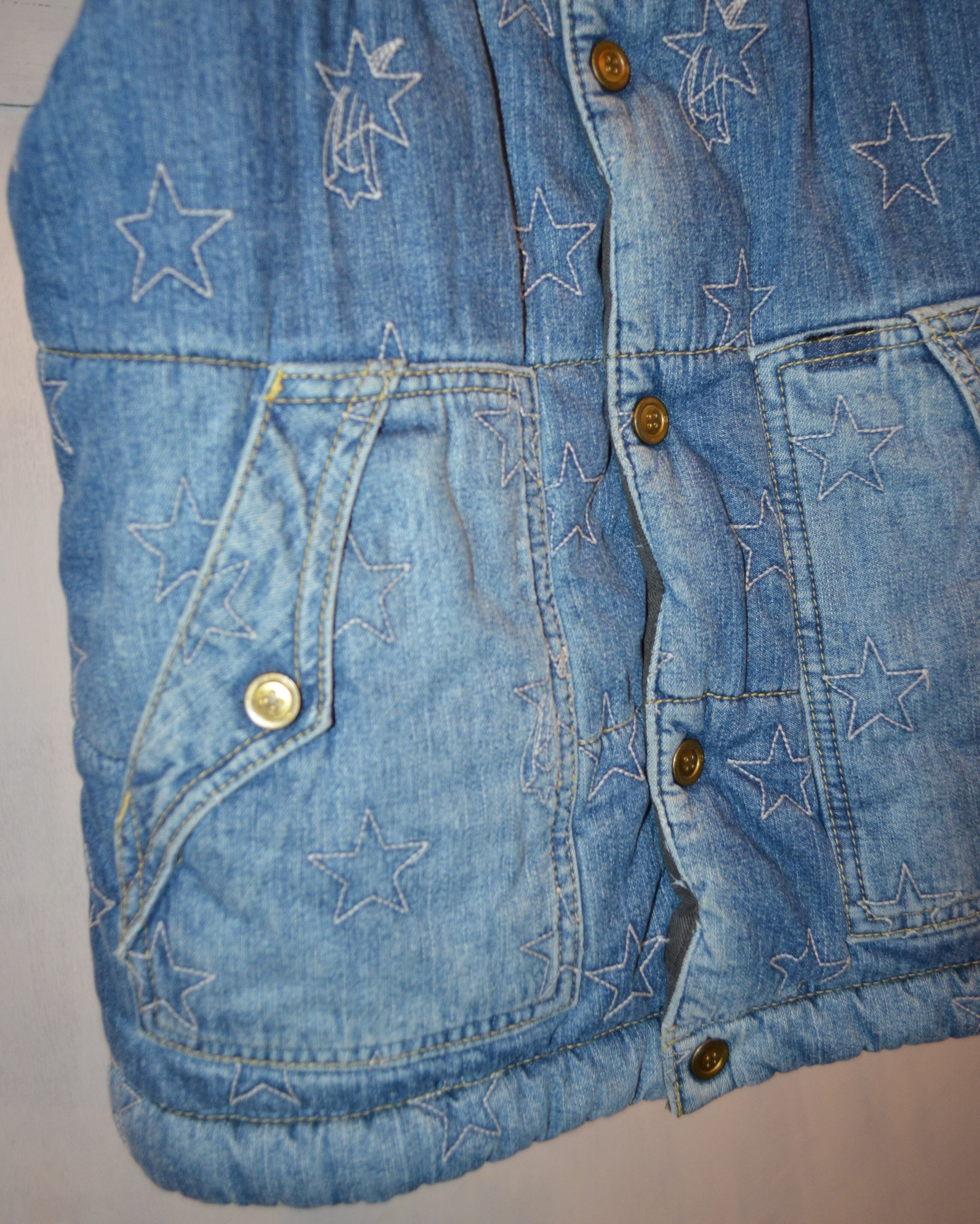 デニムに星柄刺繍のダウンベスト
