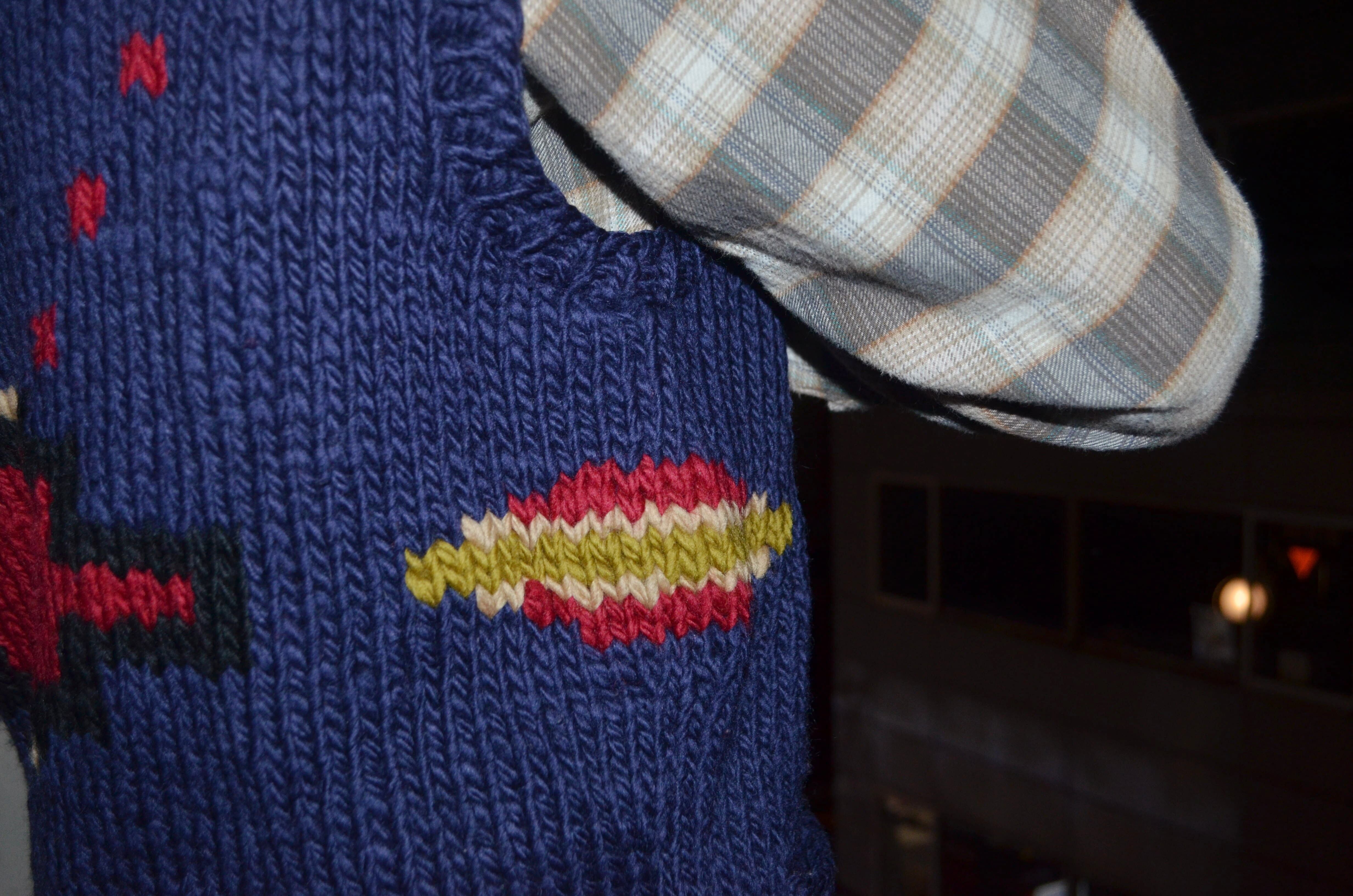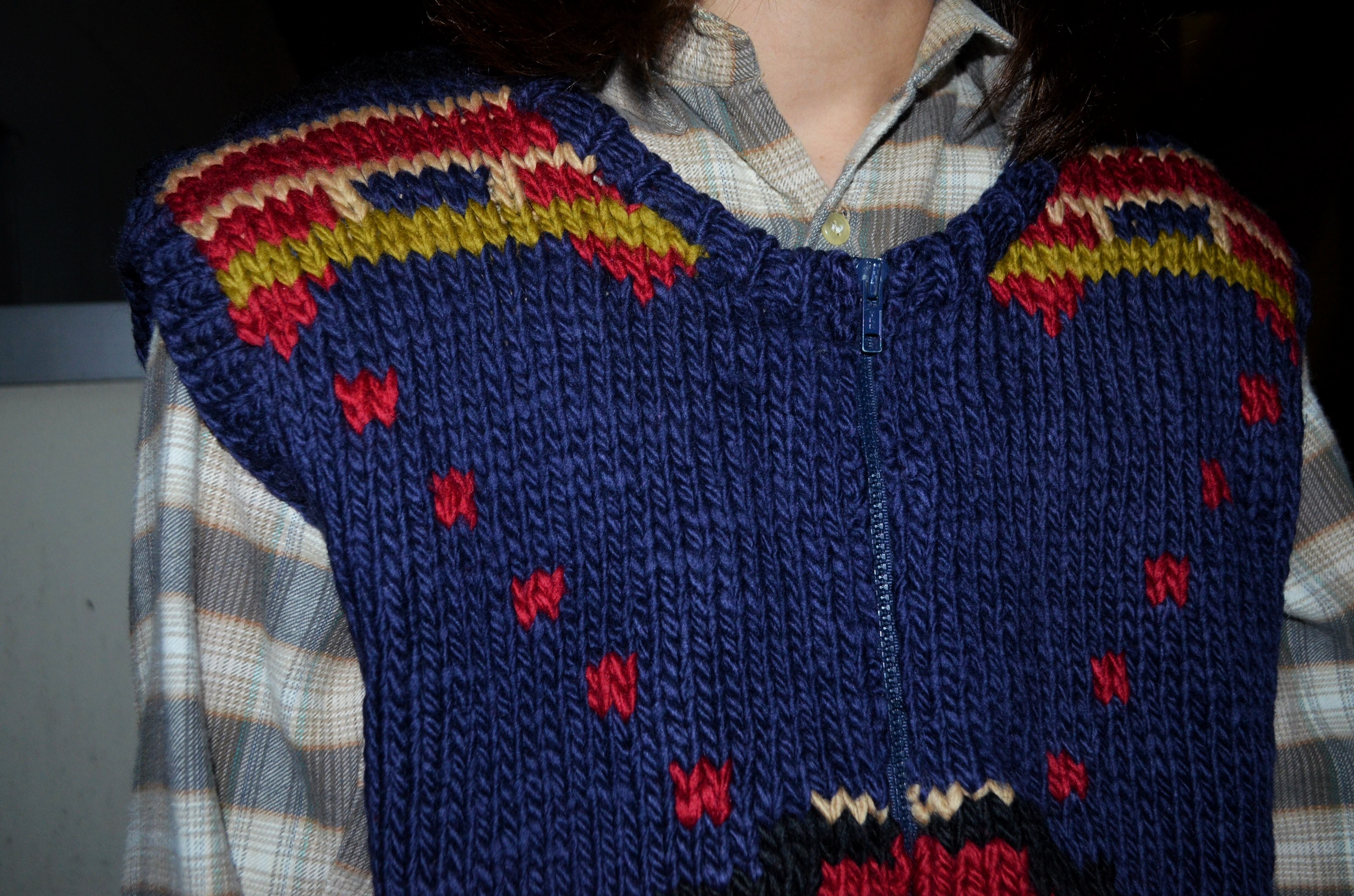 品質表示は欠損していますが、恐らく手編み機で編まれたジップアップのウールベストです。