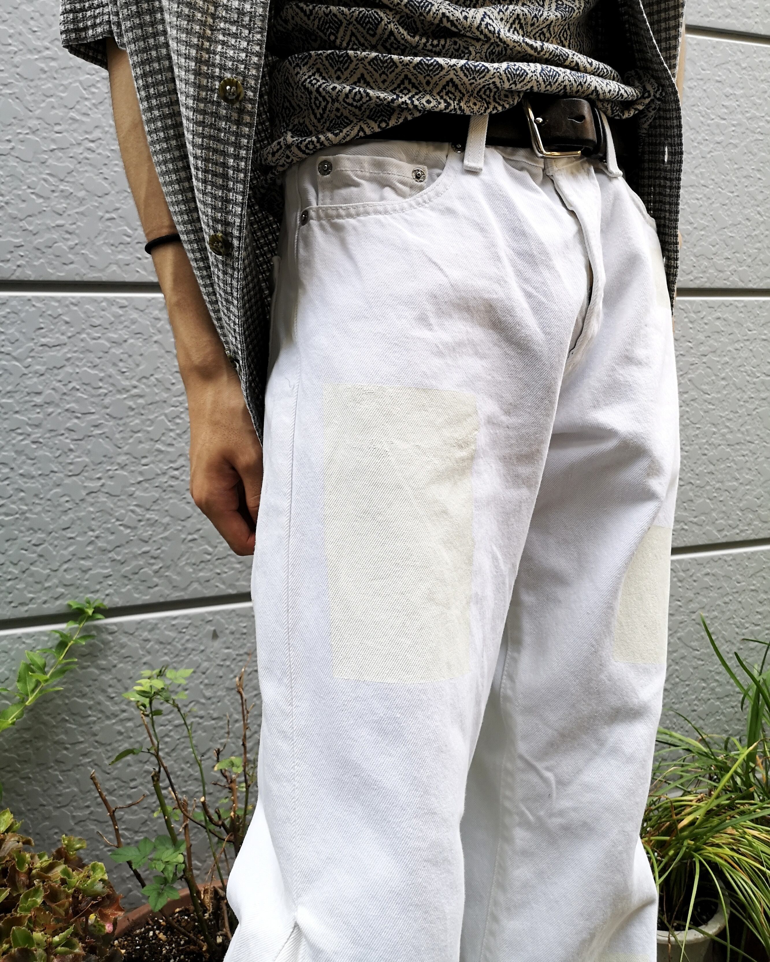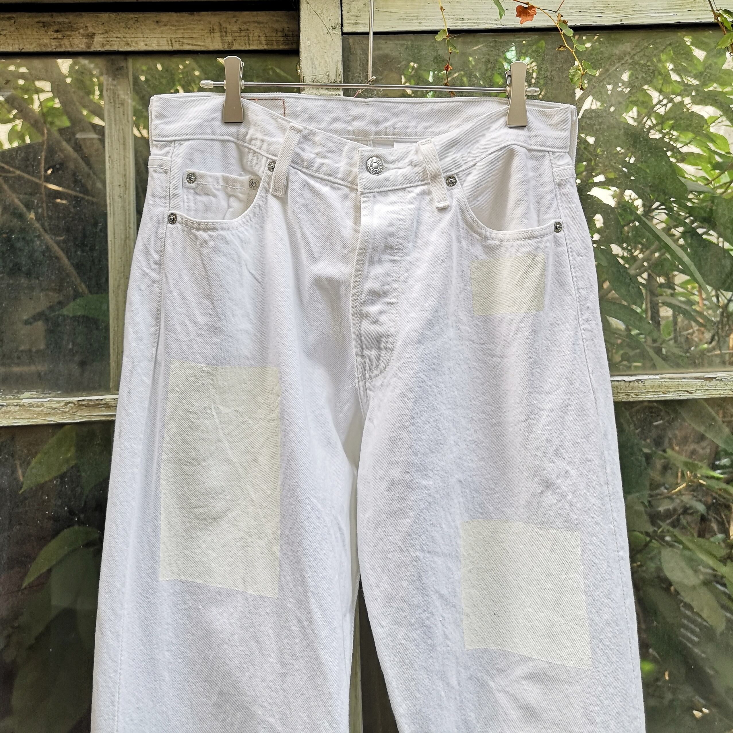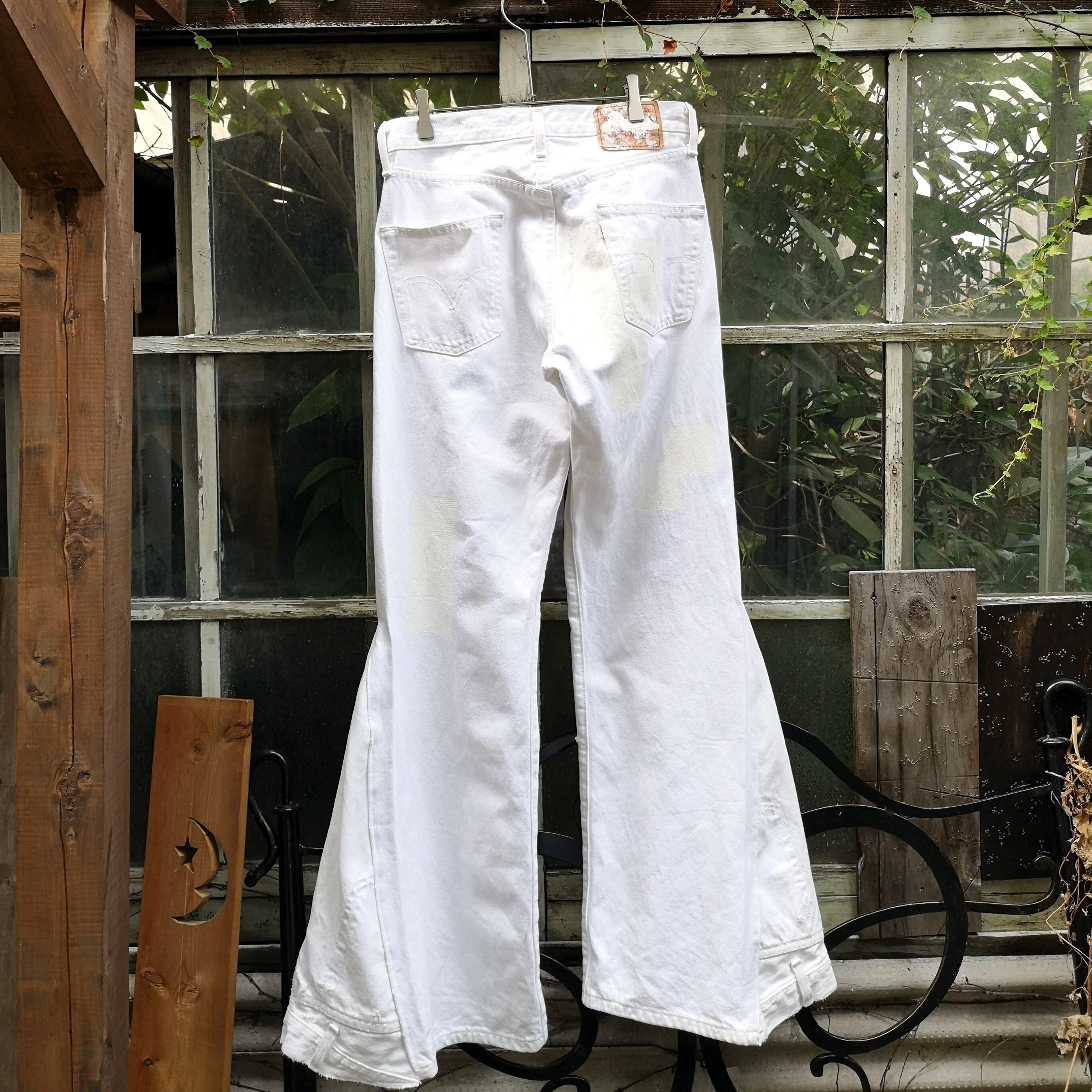 Levi'sのホワイトデニムを2本解体し再構築したフレアデニム。
