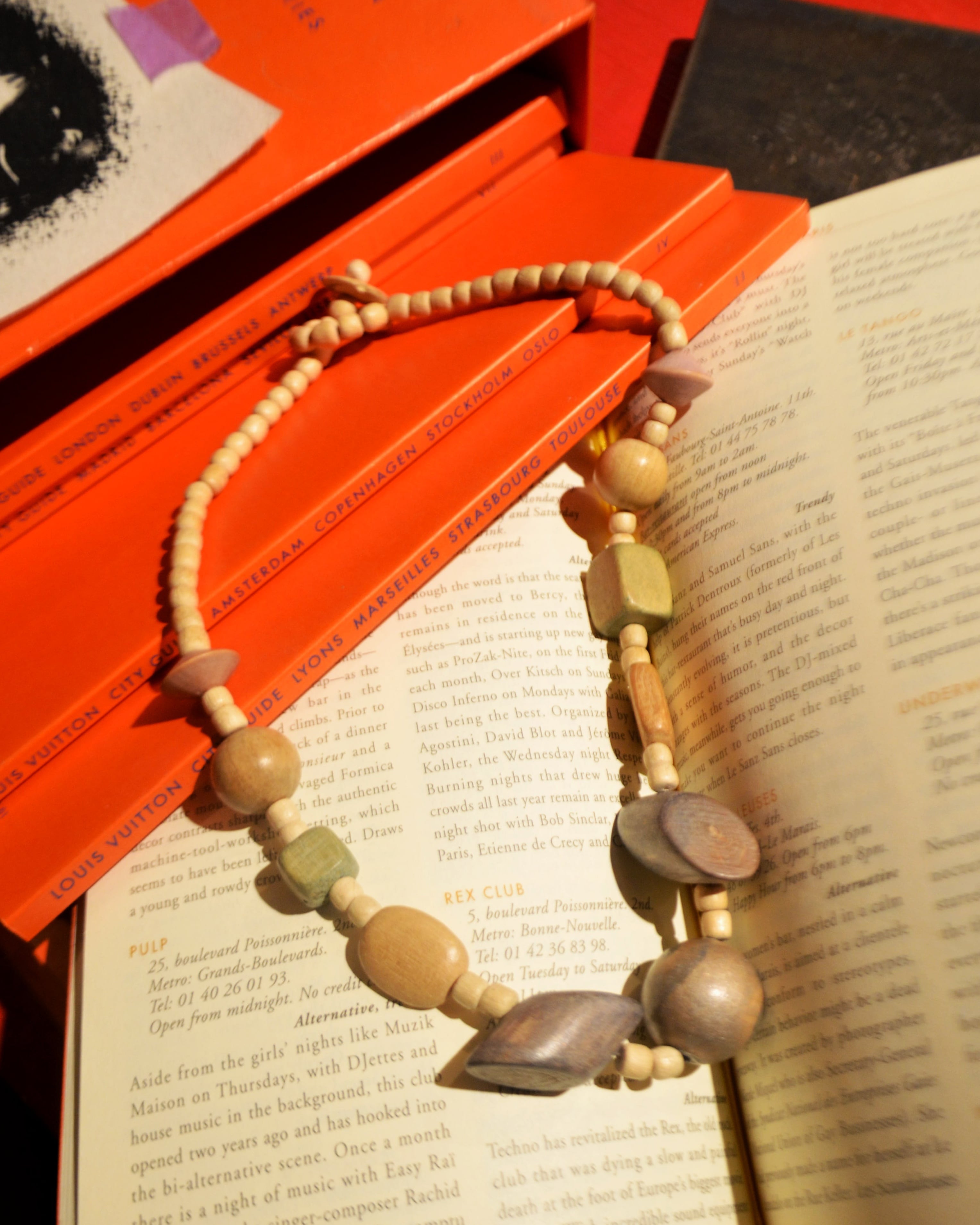 一見石に見えるパーツは全て木製。デザインと素材のギャップが醸す、不思議な違和感が魅力的なアクセサリーです。